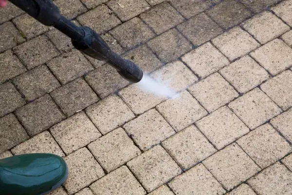 A collection of images showcasing outdoor maintenance services including power washing, sewer cleaning, and rainwater drainage system maintenance, camera system set up and installation.